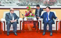 常正樂 攝 中國石油網(wǎng)消息 10月19日,集團公司董事長王宜林會見了來訪的伊拉克石油部常務(wù)副部長法亞德一行,雙方就油氣領(lǐng)域合作深入交換了意見。集團公司副總經(jīng)理侯啟軍參加會見。